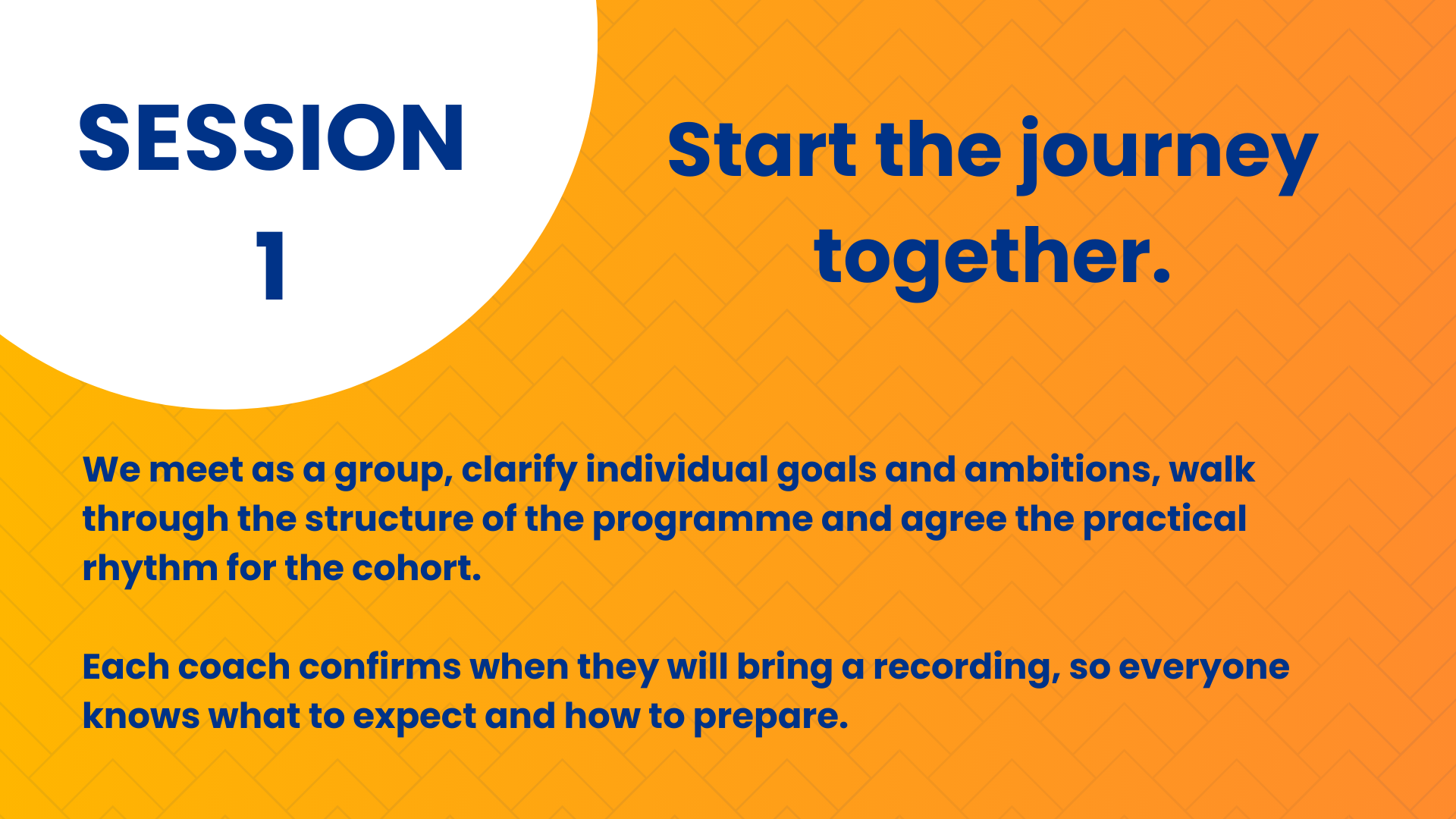 Eight weeks. Six coaches. 2 Facilitators with thousands of coaching hours behind them. Real practice. Real feedback. Real progress.